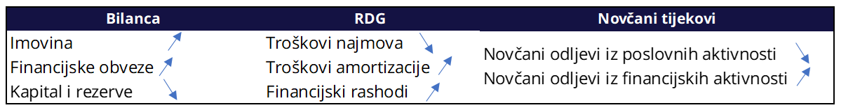 Primjena MSFI-ja 16, ima direktan utjecaj na financijsko izvještavanje dok ekonomska pozicija i novčani tokovi društva ostaju isti kako je prikazano u nastavku.